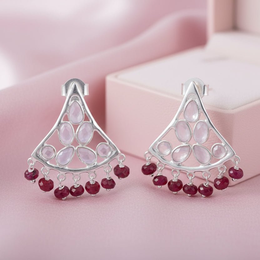 Ignite your elegance with the Eternal Flame Ruby Earrings — a dazzling expression of love, strength, and timeless beauty. Crafted in fine sterling silver, these exquisite earrings feature vivid ruby stones surrounded by sparkling cubic zirconia, creating a radiant glow that captures every heart and every light.