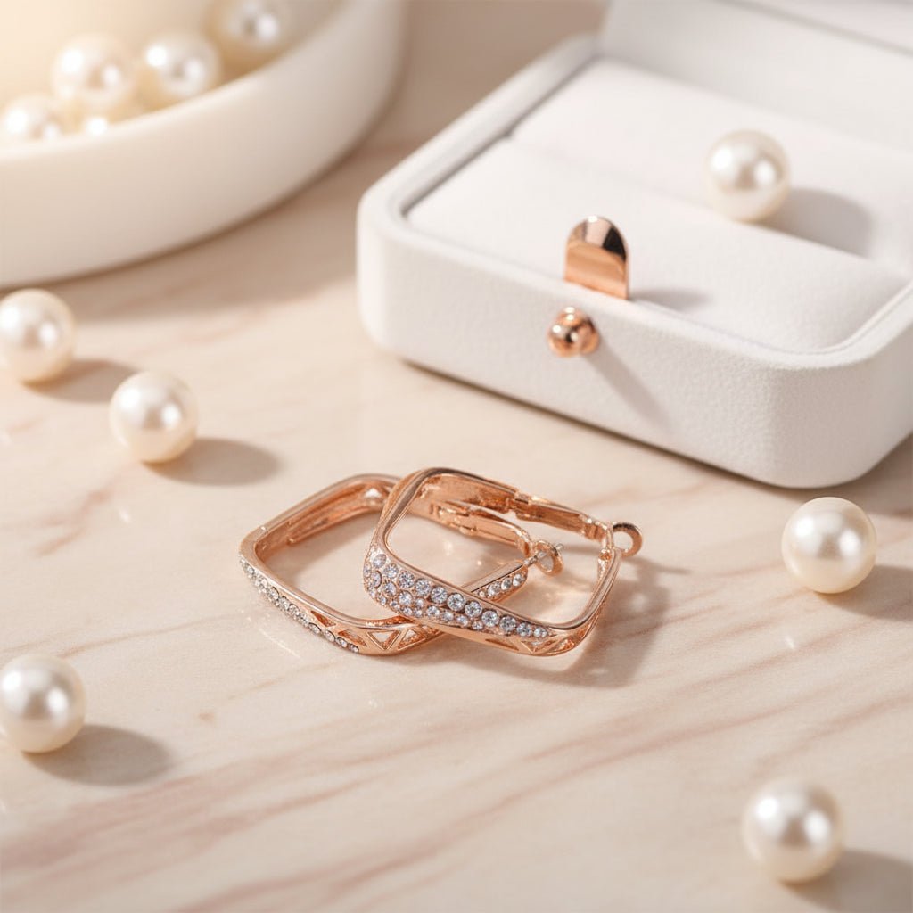 Luxury Rose Gold Earrings – 18K Gold Plated & Sparkling Rhinestones