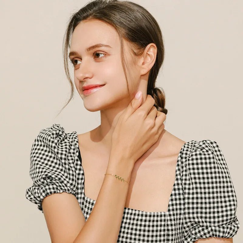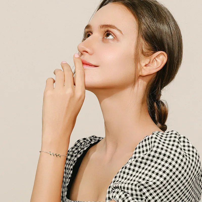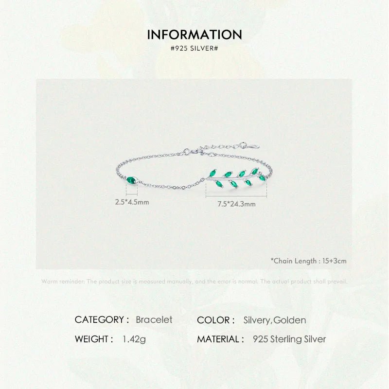 Inspired by the quiet beauty of nature, the Nature’s Glow Leaf Bracelet is a graceful expression of elegance, renewal, and feminine charm. Crafted from premium S925 sterling silver, this delicate bracelet features a finely detailed green leaf motif—symbolizing growth, harmony, and fresh beginnings.