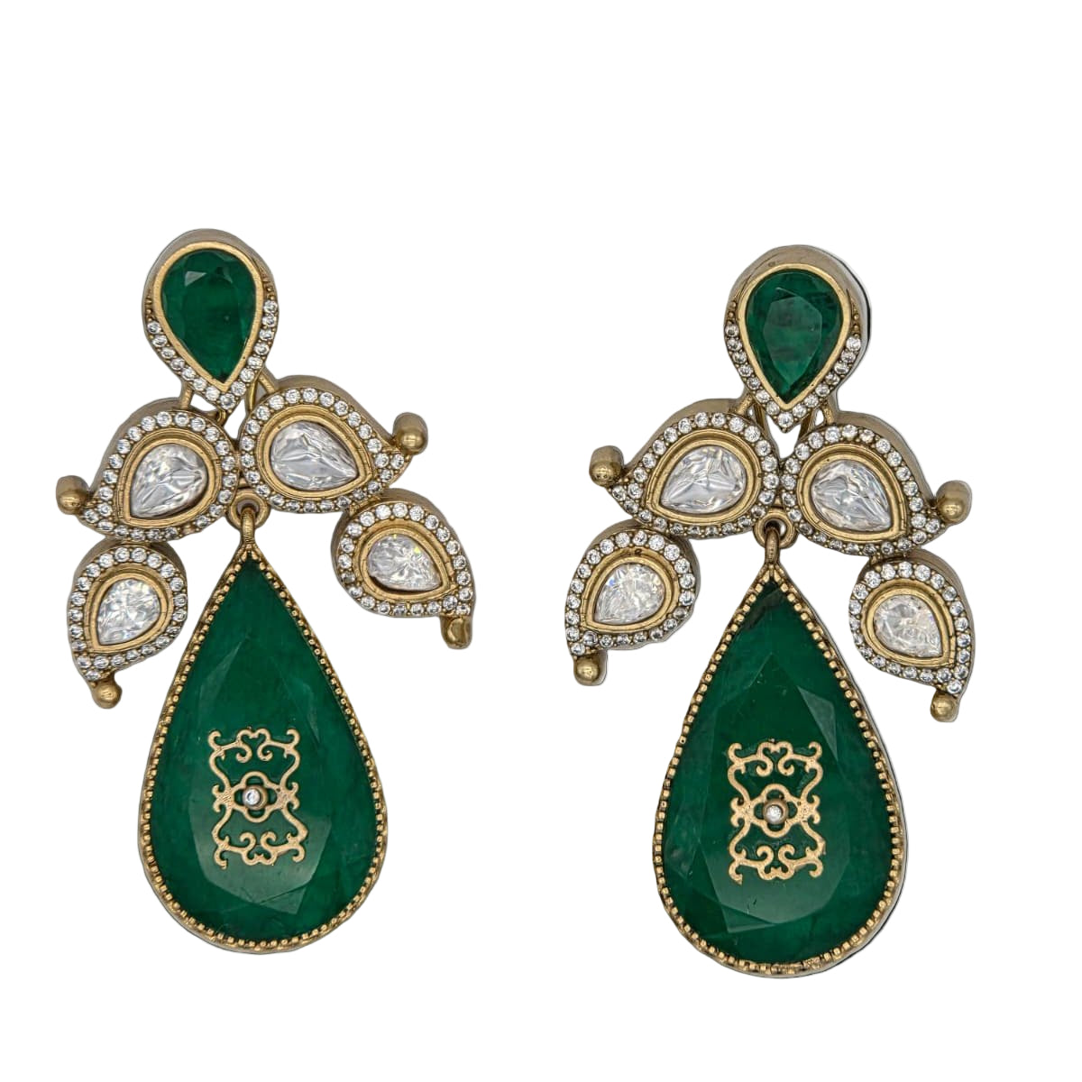 Crafted with love and designed with passion, our Moissanite & Doublet Earrings are more than just accessories—they're a celebration of your unique beauty. Set in premium gold-plated brass, each piece shimmers with the brilliance of moissanite and the allure of doublet stones, offering an exquisite, celebrity-inspired look that elevates any occasion.