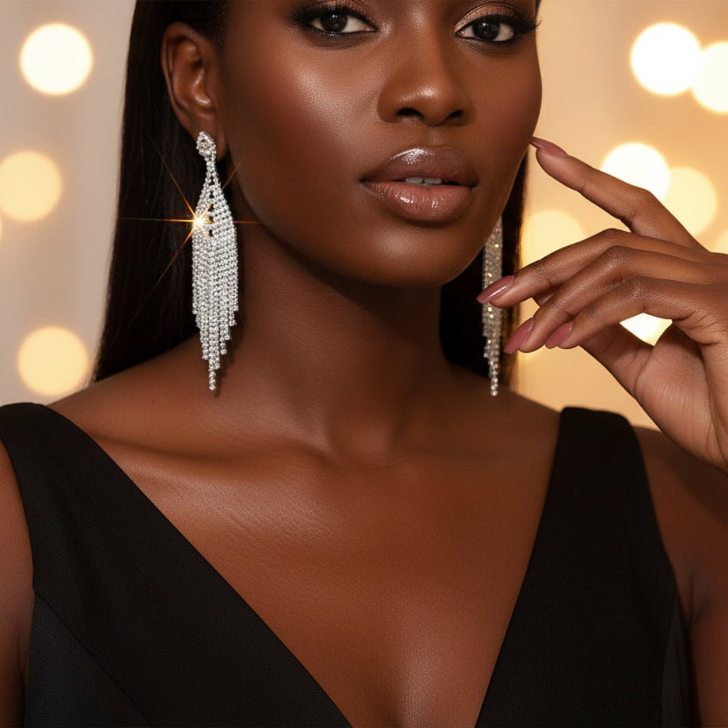 - Cascading Tassel Design: Elegant movement with dramatic sparkle