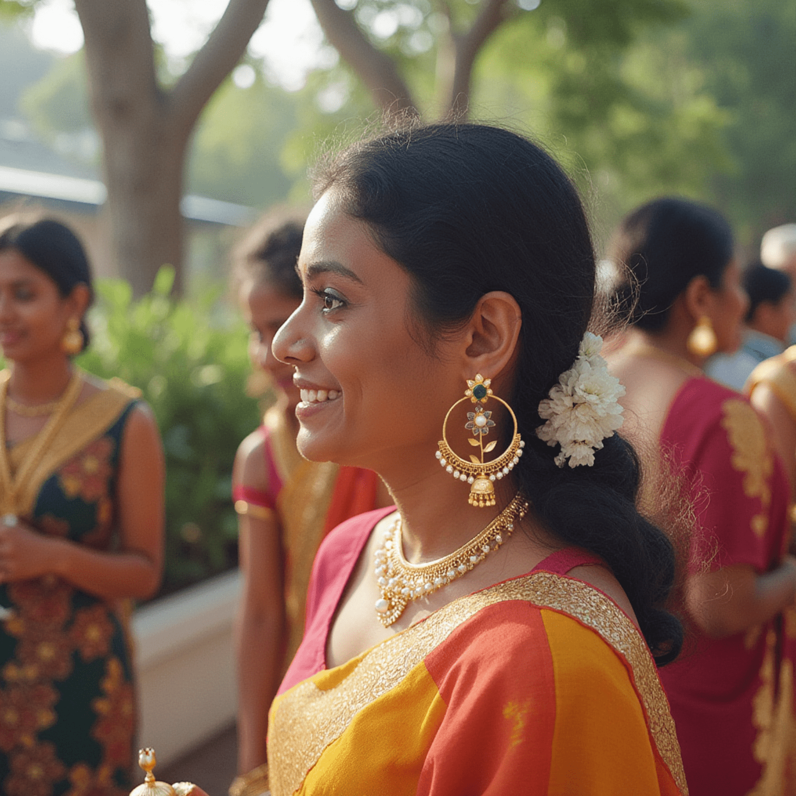 The intricate gold detailing, paired with cascading pearl accents, creates a stunning balance of tradition and luxury. Whether you’re dressing for a wedding, festive occasion, or an evening soiree, these earrings will make you shine with effortless sophistication.
